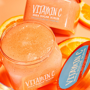 Özel Logo vücut fırçalayın ambalaj toptan vücut için 510g C vitamini Shea şeker fırçalayın